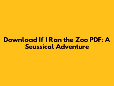 Hey everyone! Are you ready to dive headfirst into the zany, imaginative world of Dr. Seuss? Today, we're talking about "If I Ran the Zoo" and how you can get your hands on the PDF version. This classic tale is a whirlwind of fantastical creatures and outrageous ideas, perfect for kids (and the young at heart!). We'll explore the book's charm, why it's a timeless classic, and, of course, how to find that precious PDF so you can read it anytime, anywhere. So, buckle up, because we're about to embark on a Seussical adventure!
