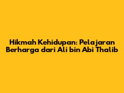 Hikmah Kehidupan: Pelajaran Berharga Dari Ali Bin Abi Thalib