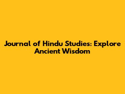 Journal Of Hindu Studies: Explore Ancient Wisdom
