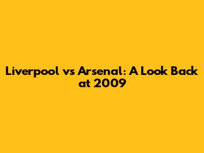 The Legacy of Liverpool vs Arsenal in 2009