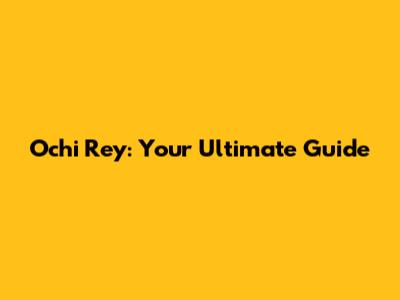 Ochi Rey: Your Ultimate Guide