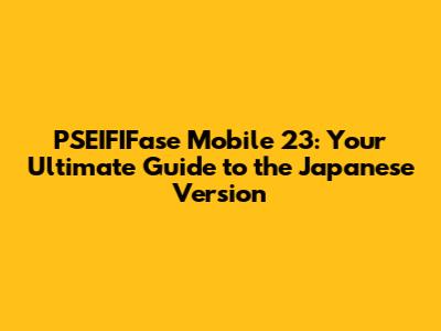 PSEIFIFase Mobile 23: Your Guide To The Japanese Version!