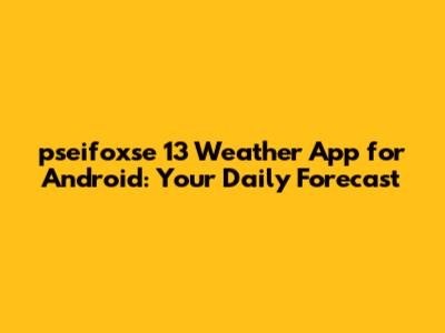 Pseifoxse 13 Weather App For Android: Your Daily Forecast