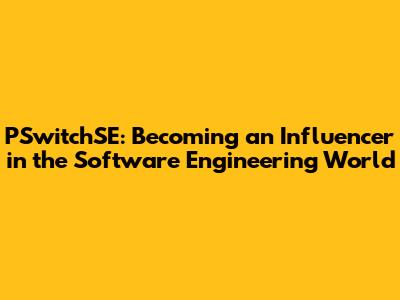 PSwitchSE: Becoming An Influencer In The Software Engineering World