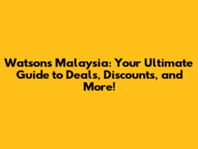 Watson's Malaysia: Your Guide To Deals & Discounts