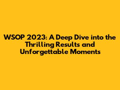 The Impact and Legacy of WSOP 2023